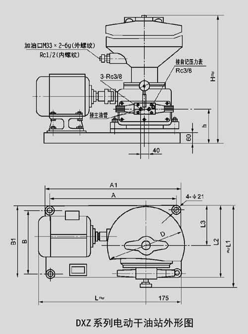 該系列電動(dòng)干油站是一種由電動(dòng)機(jī)驅(qū)動(dòng),經(jīng)減速機(jī)帶動(dòng)柱塞泵而排出潤滑脂的供油裝置。一般與雙線給油器配用,由安裝在管路末端的壓力操縱閥控制電磁閥的換向或停車,實(shí)現(xiàn)交替向系統(tǒng)主管供脂或停車的功能。