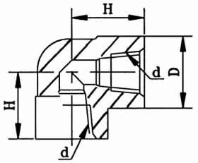 錐管螺紋 D 為 RC3/8,d 為 R1/4 的逆向內外接頭: