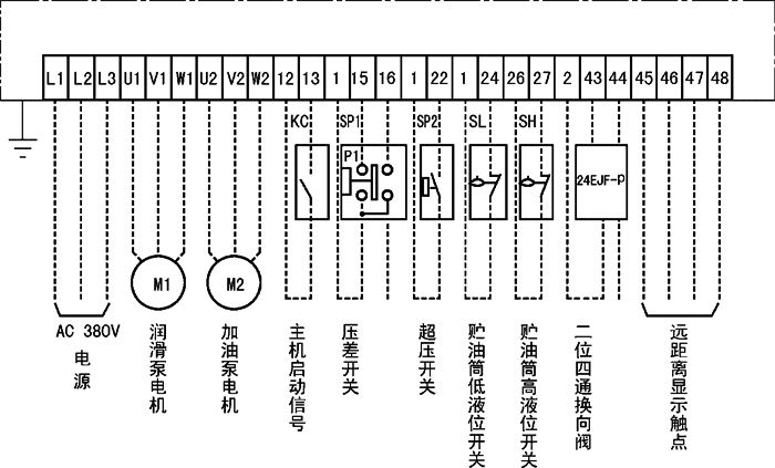 GDK03型電控箱有監(jiān)控及全自動(dòng)兩種,它適用于40MPa雙線終端式干油集中潤滑系統(tǒng)中,用于控制潤滑泵、換向閥、補(bǔ)脂泵等相互間協(xié)調(diào)工作,能對(duì)系統(tǒng)中的供油點(diǎn)實(shí)現(xiàn)自動(dòng)供油,供油完成后,自動(dòng)停止。油箱中液位低于一定限度時(shí),補(bǔ)脂泵自動(dòng)啟動(dòng),注滿油后,自動(dòng)停止。