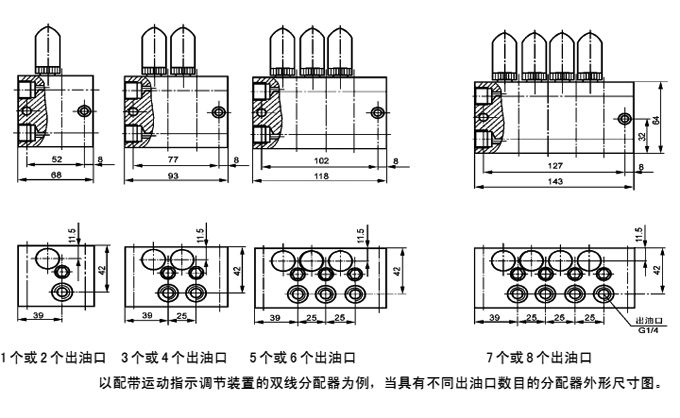 1、帶有給油螺釘?shù)姆峙淦鳎⊿SPQ1型),須按每對(duì)出油口的順序注明給油指數(shù),不注明按給油指數(shù)1供貨。