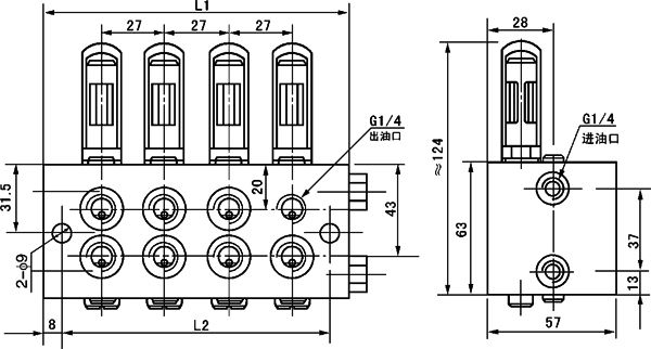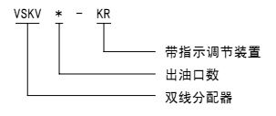 VSKV-KR型雙線分配器正面設(shè)上下二排出油口,分配器活塞正反向動作時(shí)分別從上排和下排的出油口排出潤滑脂。還可以從指示桿的動作直接觀察分配器的工作情況,并可通過調(diào)整螺釘在規(guī)定范圍內(nèi)調(diào)整出油口的給油量。