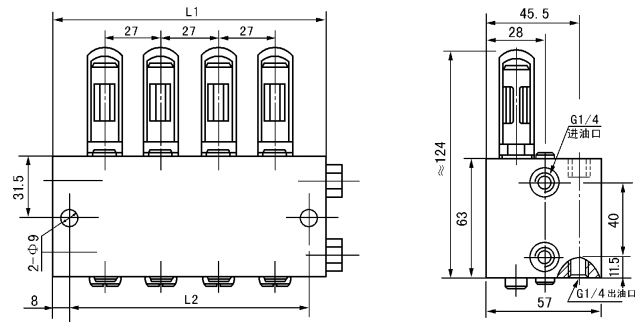 分配器適用于公稱壓力為40MPa的雙線式干油集中潤滑系統(tǒng)中。它在兩條供油主管交替的供油壓力作用下,直接由供油的壓力控制活塞動作給油,完成向潤滑點定量分配潤滑脂的功能。