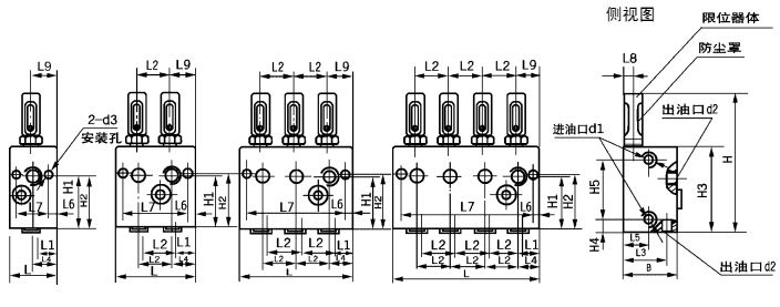 DSPQ-L系列單向出油的雙線分配器,只在下面有出油口,活塞正向、反向排油時(shí)都由下出油口供送潤(rùn)滑脂。其形式與尺寸見(jiàn)圖和表的規(guī)定。