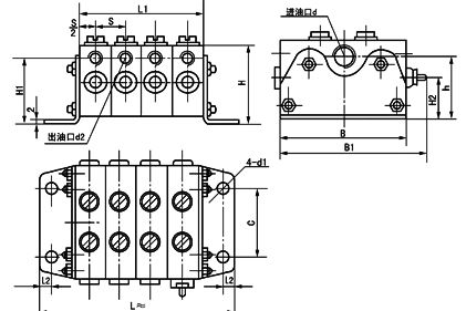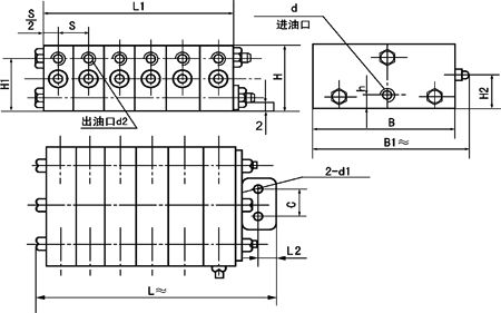 2、如某些潤(rùn)滑點(diǎn)需要的潤(rùn)滑脂量大于表列數(shù)值,可將給油器任意組合(見(jiàn)下圖)。使供油量成倍增加。