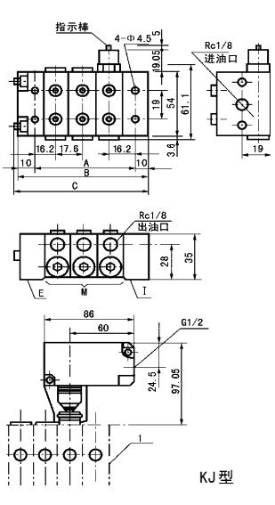 KJ、KM、KL系列單線遞進(jìn)式分配器,它由中碳合金結(jié)構(gòu)鋼制造的供給體、端部體和3~8片根據(jù)設(shè)計需要所確定的給油量和出油口數(shù)的中間體組合而成。分配器的正常出口設(shè)置于分配器的兩側(cè)面,在上面還設(shè)置有預(yù)備出口,各中間體的出油口內(nèi)均裝有止回閥,能徹底防止因潤滑點(diǎn)背壓作用而產(chǎn)生潤滑脂的逆流,保證了各出油口的給油量定量、準(zhǔn)確。