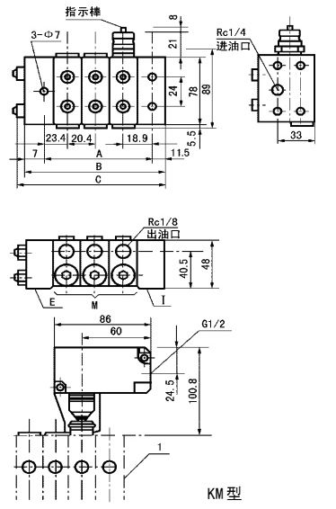 KM-*不帶循環(huán)指示器和循環(huán)開關(guān)時尺寸參數(shù)表