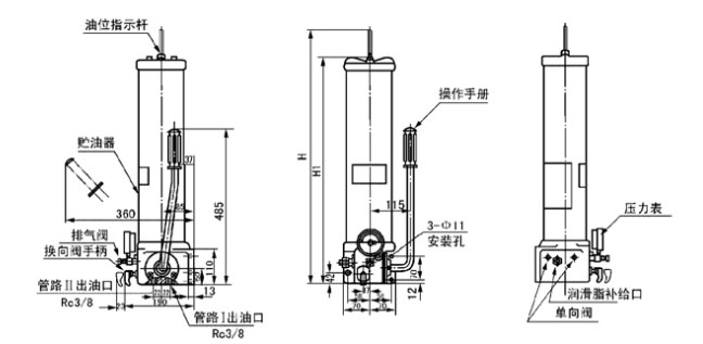 本機(jī)是一種小型的潤(rùn)滑泵,可直接安裝于機(jī)器的壁板或機(jī)架上,由人力搖動(dòng)手柄,排出潤(rùn)滑脂,可與雙線(xiàn)分配器組成手動(dòng)集中潤(rùn)滑系統(tǒng),向機(jī)器的各個(gè)潤(rùn)滑點(diǎn)供送定量潤(rùn)滑脂;適用于頻率較低(一般給油間隔8小時(shí)以上),配管(DN15)長(zhǎng)度不超過(guò)50米,潤(rùn)滑點(diǎn)不超過(guò)80點(diǎn)的單機(jī)小型設(shè)備上,作為集中潤(rùn)滑供送潤(rùn)滑脂的裝置。